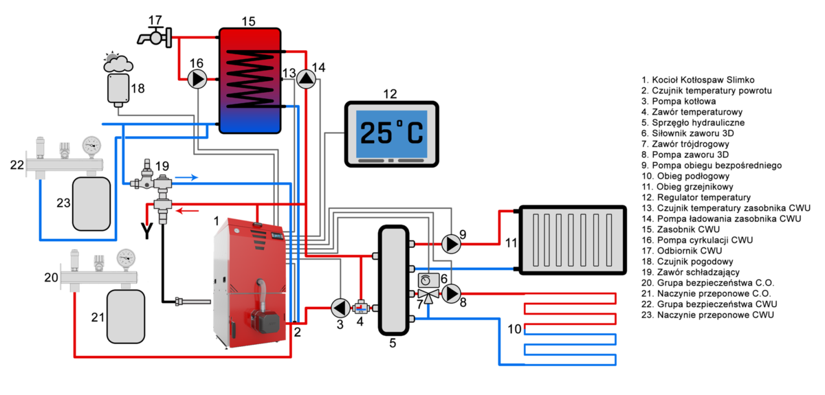 Sterowanie kotłem pelletowym 104 m2, 100% podłogówki - sposób sterowania kotłem