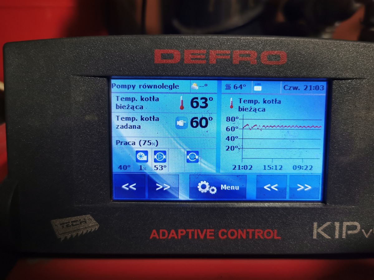 Wstawiam zdjęcia ze sterownika K1PV4 bo taki mam zamontowany, razem z wykresami temperatur