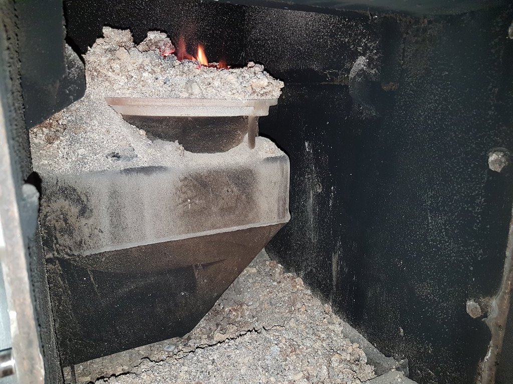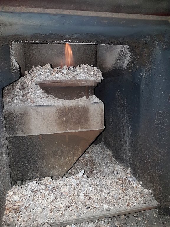 Ustawienia: Czas podawania min 1 max 6sek Przerwa min 42 max 170 Wentylator min 10 max 26 Obroty min 70 max 290 Obecnie praca 35% mocy i wiatr dolna -7 Górna 4 Piec nie czyszczony 2tygodnie,zdjęcie dotyczy popiolu. Obecnie na c.o. podłogowe +2grzejniki puszczone bo na dworze skoki temp. W okolicach 15st -