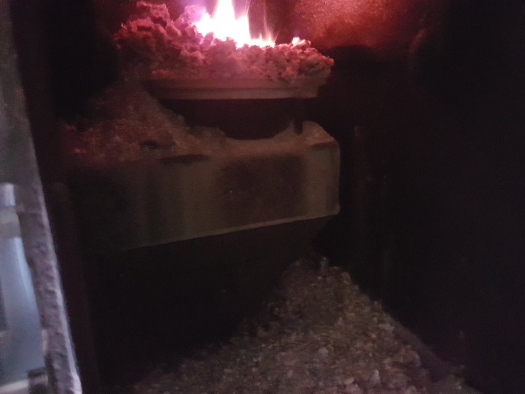 Jak dodam wiatru to się kopiec zapada i płomien z środka retorty widać -