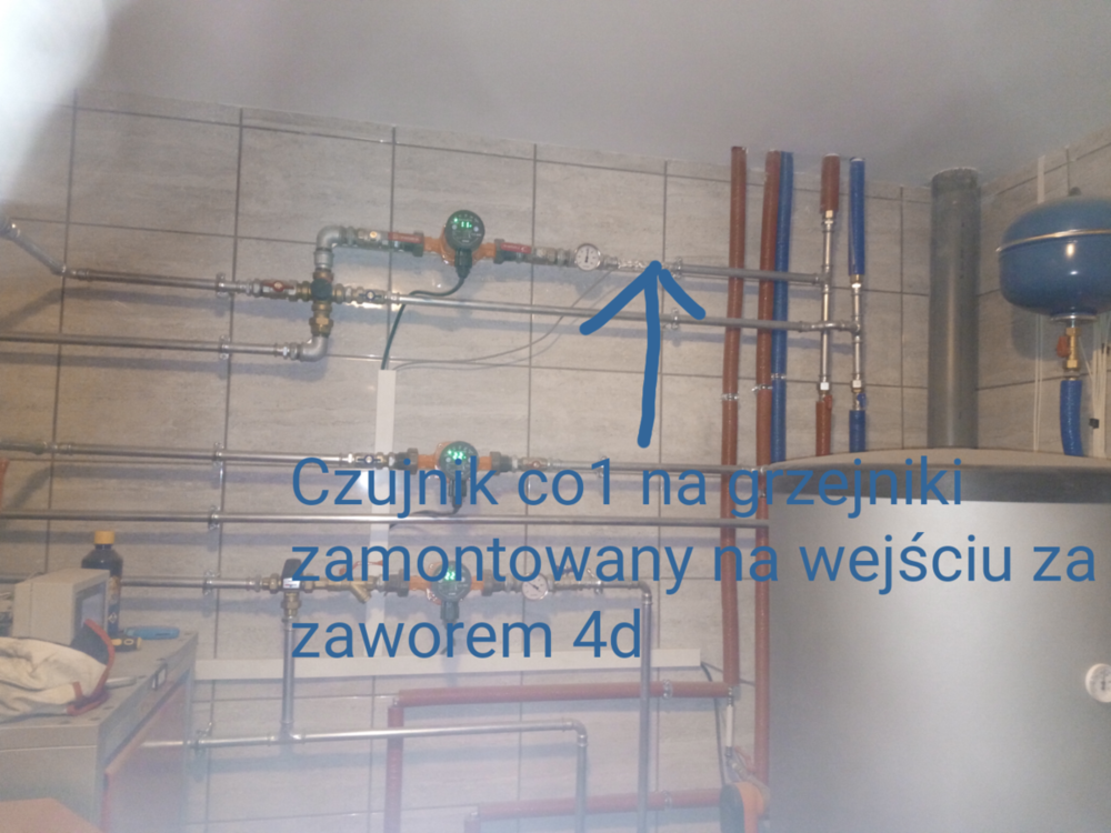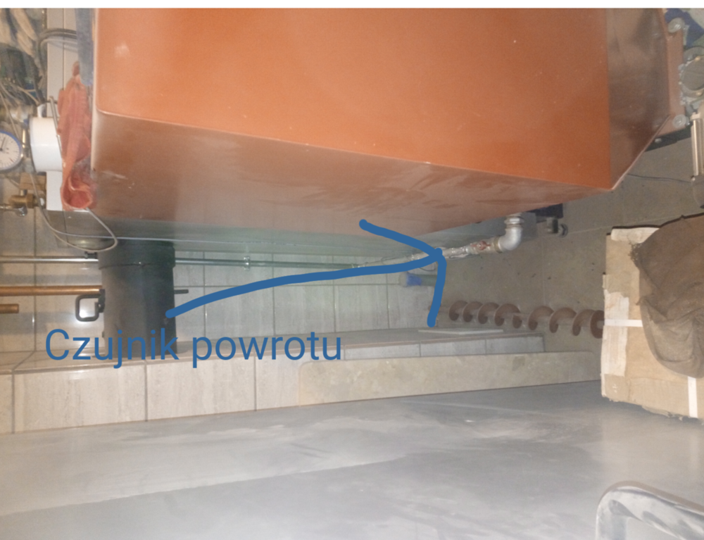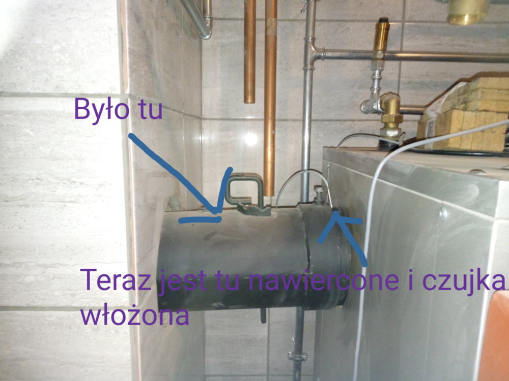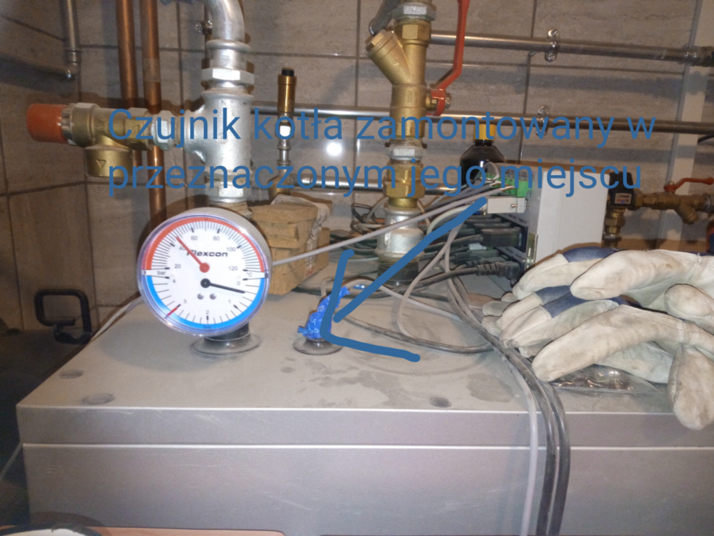 Wracając do tematu poprawiłem czujnik spalin i jest ok, jeszcze ta temperatura na bojlerze jest większa niż na piecu na zdjęciu zegar z bojlera taka sama temperatura co na czujniku, na zdjęciach pokazane gdzie są rozmieszczone czujniki. I jaką temperaturę powinno się ustawić za zaworem 4d?, I jak zmniejszyć spalanie? -