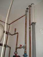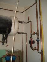 3. Witam użytkowników forum. Już wykonałem instalacje o której pisałem wcześniej. Zamieszczam fotkę poniżej instalacji. Mam jednak pytania do fachowców proszę o pomoc. Wydaje mi się że popełniłem jakiś błąd w instalacji. Odbieram wrażenie że nie mogę odpowietrzyć układu. Pompka Grundfos 20/40, podczas pracy pompki na obiegu kocioł-boiler (zamknięty układ zaworem za pompa na gzejniki)woda szeleści w boilerze podczas pracy pompy, Za pompa przed bolilerem jest odpowietrznik automatyczny na 10 MPa. Nie znam się na tych odpowietrznikach ale wydaje mi się zę on nie pracuje. Nad tym sufitem jest otwarte naczynie wyrównawcze. kocioł na paliwo stałe, Odbieram też wrazenie że mam zapowietrzony piec bo przy temperaturze 70 stopni straszne bulgotanie, dlaczego gotuje się przy tak niskiej temperaturze. Proszę o jakąkolwiek pomoc. Do naczynia wyrównawczego dochodzą dwie rury odpowietrzające. Z głównego pionu prosto z kotła dochodzi do naczynia górą , a odpowietrzenie z układu grzejnikowego dochodzi do naczynia dołem. Mam nadzieje ze to jest jasno napisane. Więc problem który mnie męczy to powietrze które jest a nie powinno w układzie, a może za szybka pompa która pracuje, ja się na tym nie znam. Z góry dziękuje za wszelką pomoc.