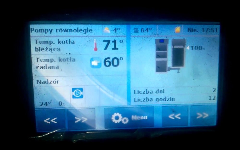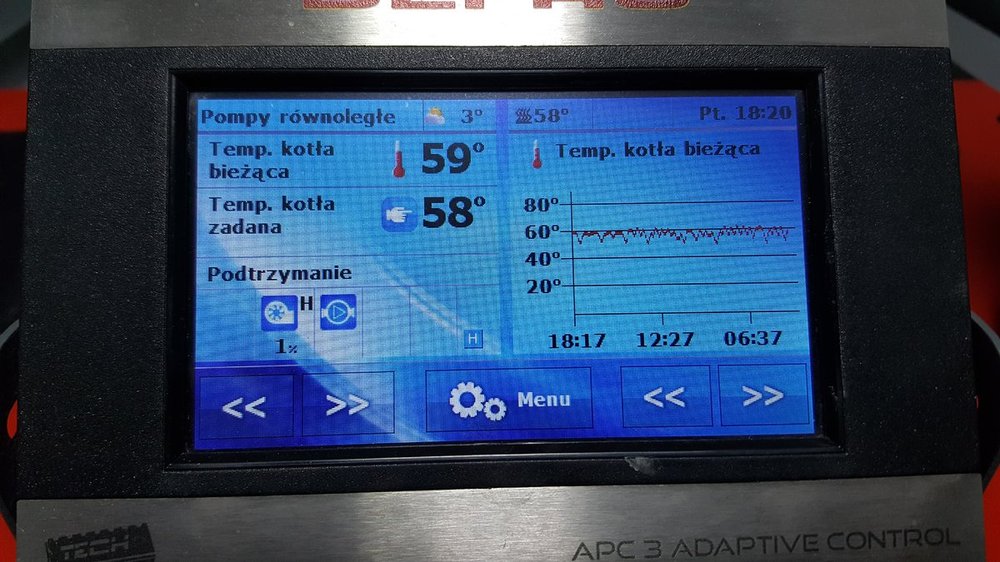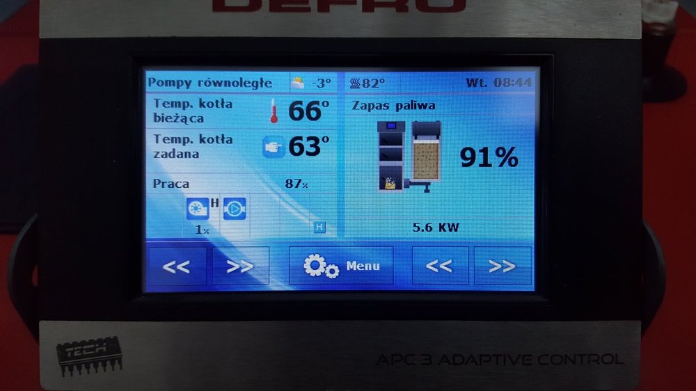 Menu Serwis - kontrola Paliwa - praca z wydajnością podajnika i jak na to klikniesz to jest załączona i wtedy wyświetla się taka informacja pod zbiornikiem. Ja już to wyłączyłem bo zrobił mi się bardzo brzydki wykres i piec startuje co godzinę. Ale to i tak nie pomogło więc nie wiem co się wydarzyło. Szybko dobija szybko traci :/ Zmiejszylem moc pracy z 87 na 80% nic nie dało. -