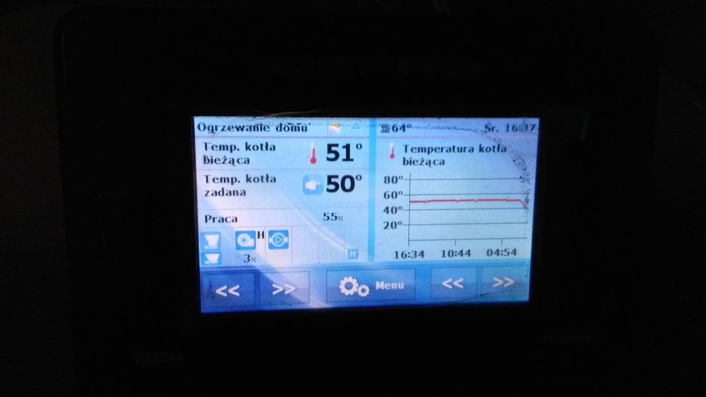 5. Z powrotem wróciła mi równa praca, w sumie to przestawiłem tylko temp. Zaworu na niższa. Ale teraz za to w ogóle nie wchodzi w stan czuwania ani podtrzymania, poprostu cały czas pracuje i się nie wyłącza. hist. Ustawiona była na 8 i 3 chyba... Teraz wziąłem obie na 2. Zobaczę wieczorem wynik ostawień. Więcej pali, wcześniej się wyłączał i załączał ciągle - 15 procent pelletu przez 24h schodziło z zasobnika, przy równej ciągłej pracy idzie 20 procent. Nie wiem co lepsze