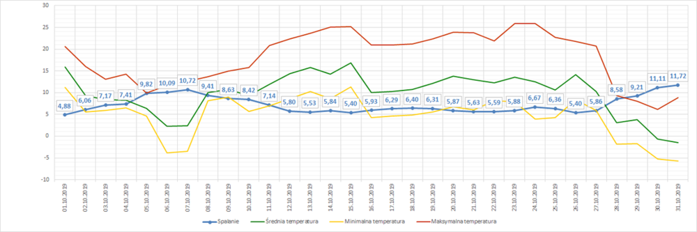 U mnie spalanie w październiku wzrosło z 4,88 kg do 10,09 kg.