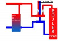 Witam wszystkich - hej. Szukałem, ale nie znalazłem odpowiedzi, może źle szukałem. Otóż tak: Dom dwupiętrowy, instalacja częściowo działa grawitacyjnie. Dwa kotły CO, jeden gazowy stojący, zawór 4d - pompa za zaworem. Drugi kocioł, stary żeliwny, ponoć pamięta niemca :) , nie posiadał pompy CO. Gdy grzał kocioł gazowy, ponoć wszystkie grzejniki grzały ( piszę ponoć bo niestety nie sprawdziłem tego ) Natomiast jak się można spodziewać, gdy pracował kocioł żeliwny, grawitacyjnie, grzejniki - kaloryfery na 2- piętrze grzały , 1-piętro też, natomiast parter słabo. Zamontowano pompę CO do kotła żeliwnego, i jest problem. Gdy temperatura wzrośnie do 70 stopni lub więcej, wyrzuca wodę przez naczynie, i nie grzeją 2 grzejniki na 2-pietrze, te tzw. ostatnie. Bez pompy dochodzi do nich ciepła woda, ale po załączeniu pompy już nie. Ciśnienie statyczne jest na poziomie 1 bara, więc kocioł gazowy pracuje w układzie otwartym, razem z kotłem żeliwnym. Wg. mnie, za nisko zamontowane jest naczynie wzbiorcze, tylko dlaczego kocioł gazowy nie wyrzuca wody ? A kocioł żeliwny podnosi słup wody i woda przelewa się z naczynia, co prawdopodobnie skutkuje zapowietrzaniem się ostatnich kaloryferów. Proszę o ewentualne inne rozwiązanie problemu ? Nie wklejam zdjęć, gdyż każdy wie jak wygląda instalacja co, rury częściowo stalowe, od kotła żeliwnego 2", gazowy wpięty rurą stalową 1", dalej to już jedna niewiadoma, wszystkie rury schowane, instalacja częściowo w miedzi. Można się tylko domyślać którędy i gdzie idą. Aha, występują chyba 2 piony. Pozdrawiam. :( -