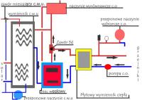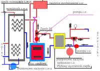 Proszę o opinie , generalnie jest tak: Mam domek jednorodzinny z użytkowym poddaszem, będę stawiał osobna kotłownię , tak do 2,5 m wysokości. Piec będzie węglowy ( narazie stary , zwykły ze sterowaniem elektrycznym i nadmuchem ) , zamierzam wstawić solar na C.W.U i chcę aby instalacja c.o była zamknięta , tak abym nie musiał prowadzić pionu do domu. Dlatego chcę aby kotłownia ( piec , wymiennik c.w.u. i płytowy wymiennik c.o. ) był w układzie otwartym , grawitacyjnym. Od wymiennika płytowego c.o. do domu układ zamknięty. Proszę o sugestie co i gdzie ewentualnie zamontować. Dodaję szybki schemat...