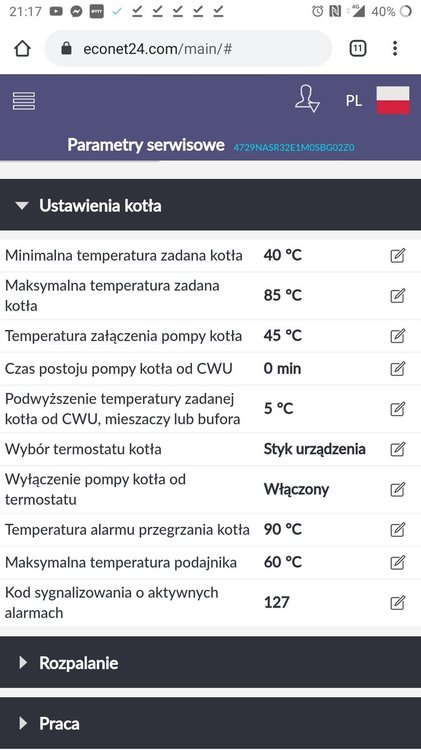 Kolejny update w sprawie mojego nieszczęsnego problemu z rozpalaniem. Był u mnie wczoraj serwisant, posprawdzał wszystko, znalazł jakieś 2 luźne przewody, podkręcał wszystko, 5 razy odpalał i gasił palnik ale nie udało się odtworzyć problemu. Kocioł pięknie odpalał za 1 razem. Dziś rano email z econeta z alarmem. Dzwonię do serwisanta i jemu już pomysły się kończą i jedyne co według niego może być to sterownik. Przekazał wszystkie dane do serwisu KIPI po czym dzwonią do mnie z centrali KIPI i proszą o numer UID regulatora aby mogli przeanalizować całą pracę kotła przez econeta. Jeśli nic nie znajdą to wymienią regulator. -