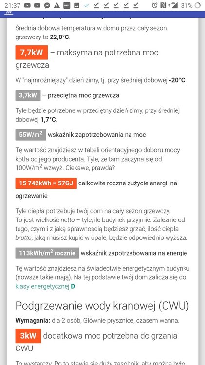 Panowie możecie proszę zerknąć na moje dane i podpowiedzieć co zmienić? W tej chwili kocioł spala około 30kg na dobę i za nic nie mogę zejść niżej. W tej chwili działa to w ten sposób, że mam siłowniki termoelektryczne na każdym grzejniku i czujniki temperatury w każdym pomieszczeniu. Jeśli temperatura w którymkolwiek pomieszczeniu spadnie poniżej zadanej to termostat otwiera obieg grzejnika tylko w tym pomieszczeniu i zwiera styki termostatu przy kotle i włącza pompę od C.O. Histereza pomieszczeń ustawiona na 0.5 stopnia. Zadana kotła to 75s, Histereza 10s, FL. Dom 150mkw, nowe okna, dobrze ocieplony. Wyniki ze strony ciepło właściwe też poniżej. Same grzejniki plus podlogówki w 2 łazienkach na zaworach RTL. -