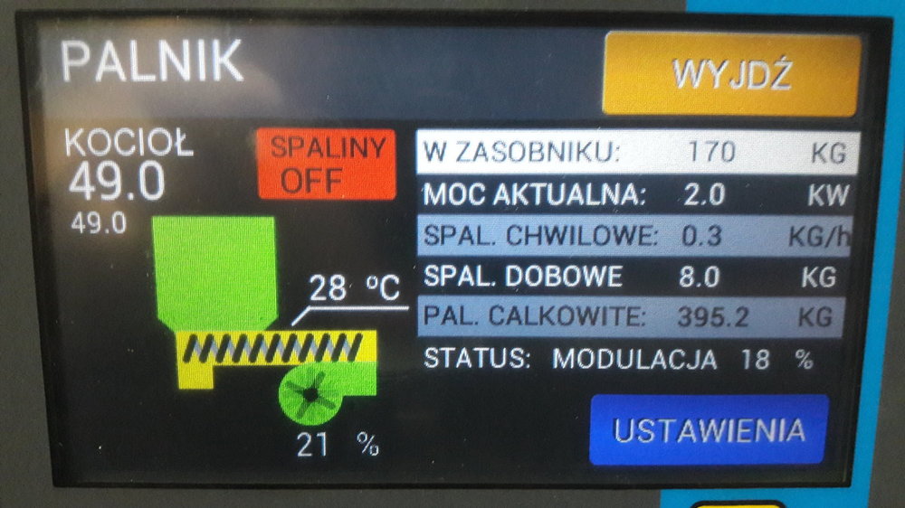 Witam. Po przetestowaniu różnych nastaw, osiągnąłem to co poniżej. Oparłem się na waszych poradach, biorąc pod uwagę inny palnik i inna konstrukcję kotła. Wahania na wykresach to już chyba wina instalacji, gdzieś jest jeszcze powietrze. Delta balansuje~4 Spalanie powoli spada. Przez 16 dni spalanie ~100 kg. Licznik pełnego kosza nie pokazuje właściwej ilość. Standartowo jest 150kg jednak u mnie wejdzie ~110 kg. Podziękowania.