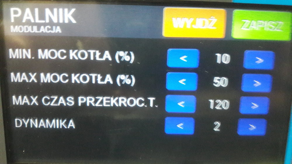 @Misiu Standartowa modulacja, była na 5 ale max to 7 min 1. Czyli dalej ustawienia użytkownika. Przy naszych palnikach względem innych + wysokość komina i jego ciągu + kocioł. Dalsze modyfikacje sterownika mile widziane. -