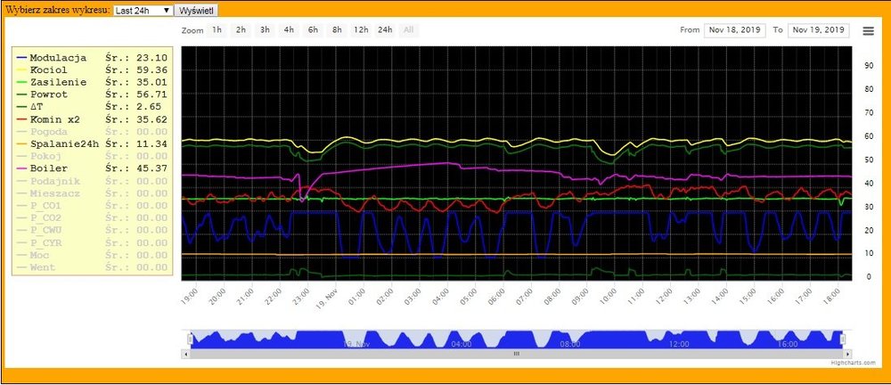 Pomimo faktu posiadania sprzęgła hydraulicznego, włączyłem CWU na stałę modulacja się poprawiła - wykres od CO jest lepszy. Spróbuje jutro zrobić CWU na program czasowy (od 21 do 6 rano i od 12 do 14). Z.obaczymy czy to coś da. Zastanawiam się też nad wymianą bojlera na taki 300 L z dwiema wężownicami (może wtedy było by lepiej naładować bojler do np 60 stopni w nocy i na dzień by styknęło). -