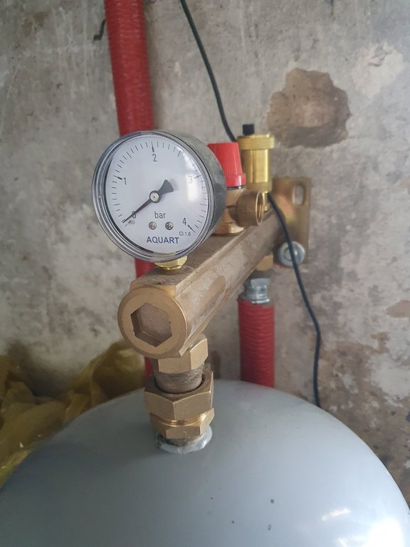 Zdemontowałem naczynie - 1.5/1.6 bar. Zmniejszyłem cisnienie do 0.9, po zamontowaniu nabilem do instalacji wody do wskazania 1.2 na manometrach, przynajmniej wiem że odpowietrzniki działają;) -