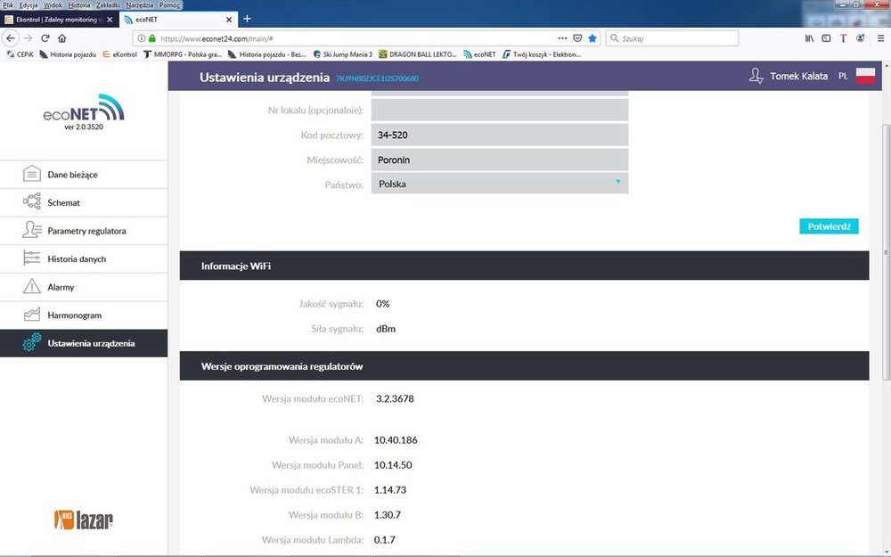 Witam Czy jest jakiś problem z econetem bo nie mogę podglądnąć parametrów przez internet i w aplikacji
