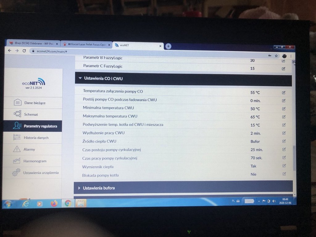 Problem jest taki,ze do niedawna kocioł pochłaniał 2 worki peletu 30kg i nagle coś mu odpaliło przez dobe wykopcił 150kg,zrobiłem ustawienia z przed przeglądu i zszedł do 7 workó,a po drugiej dobie do 4 to i tak dwa za dużo.do serwisu zgłaszał awarie i zero odezwu.Jak tak dalej bedzie to juz musze zamawiac następną dostawe peletu.Mam sterownik pokpjowy ecoSTER T1,moge podesłac na e-mail logowanie -