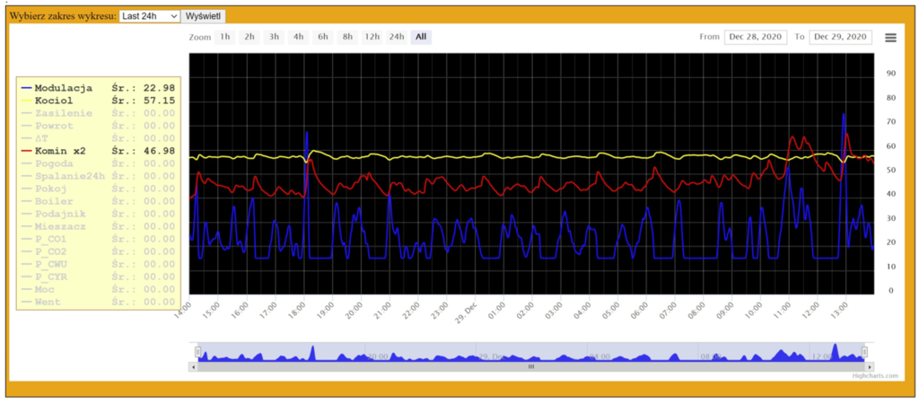 Panowie co sądzicie o takim wykresie? Generalnie spala się dosyć dobrze, ale mam niestety czarno w kotle ( natomiast z komina czysto tzn nie widać aby kopciło). Próbowałem zwiększać , zmniejszać powietrze ale to nie przynosi rezultatu. Może to kwesta samego pieca ? - ma już parę lat