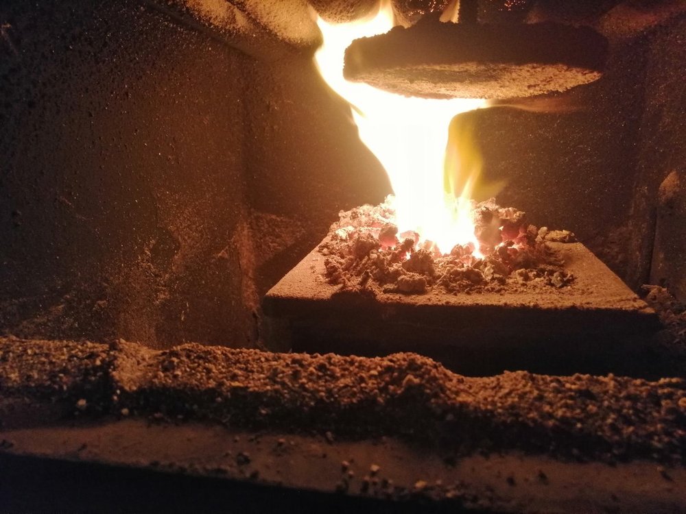 Kaganiec sciagniety. Powrot oscyluje w granicy 40 stopni przy temp pieca 60.. Delta wysoka, wiem ale inaczej nie chce być..oczywiscie czujnik zamontowany przy wejściu powrotow do kotla.. Potencjal obliczony z przesypu na 14.9kg dzis zasypalem 175kg i policze ze zuzycia. Czas przekroczenia, 45minut Powietrze tak wysoko ze wzgledu na kopcenie i niedopalanie. Przy ustawieniach 4(start)-21(najwyzsze ustawienie bez efektu palnika) jest mnostwo sadzy. Mimo iz palnik jest nowy i przyjechal uszczelniony, ja poprawiłem to uszczelnienie to mam wrazenie ze pali sie dziwnie... Tak jak na zdjeciu... -