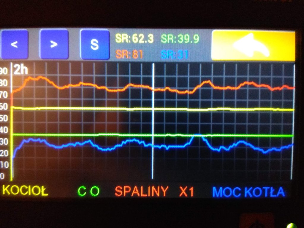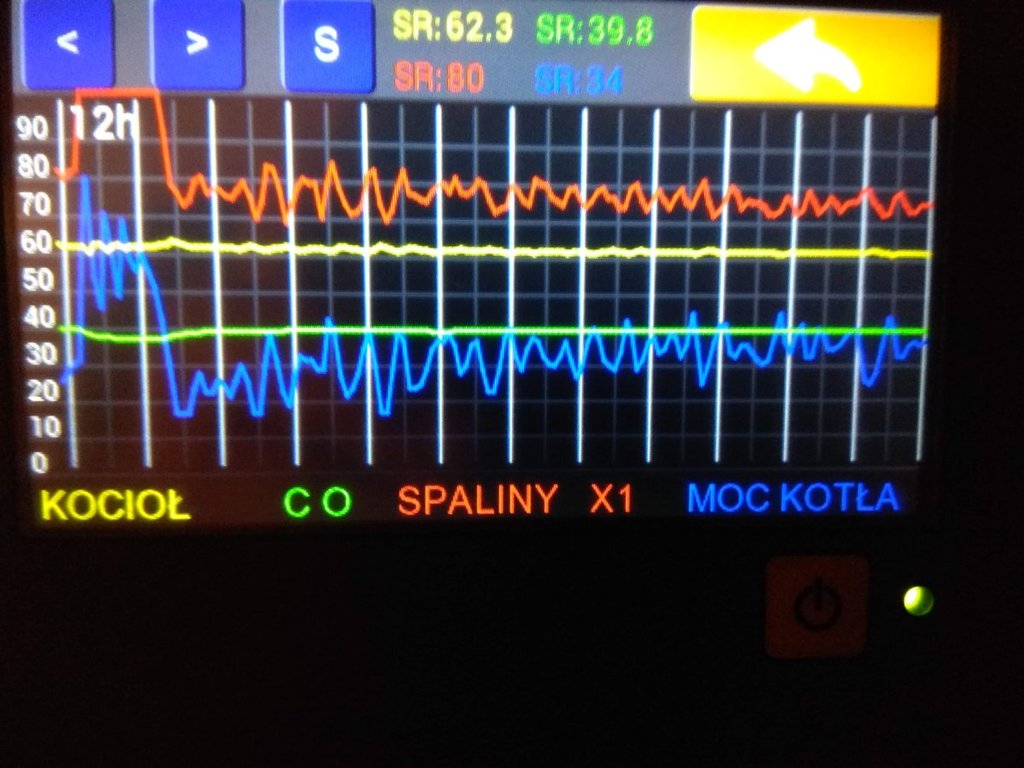 Dzisiaj puściłem sterownik "luzem", żeby zobaczyć jak piec działa bez korekt pochodzących od bragera. Zasadniczo tlen mam na poziomie 12-16 i tak chyba ustawię sterownik. 16 to trochę dużo, na małej mocy ciężko zejść z tlenem przy tak przewymiarowanym piecu. Testy robiłem sobie na różnych poziomach modulacji przy grzaniu CWU. Trwa to z jakąś godzinę, ale jasno mogłem stwierdzić, że przy zablokowaniu na konkretnym poziomie modulacji ilość tlenu rosła. Co by chyba znaczyło, że węgiel się wypalał szybciej niż był podawany i że dawałem za dużo powietrza do tej pory. -