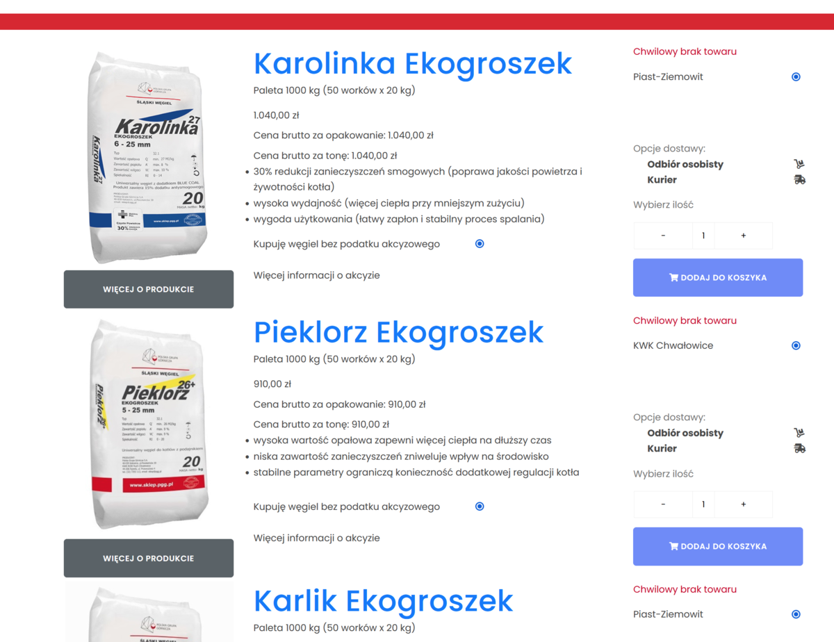 I jest od 18 Karlik i pieklorz luzem. Innych nie ma. Łącznie węgiel utrzymał się przez 10min