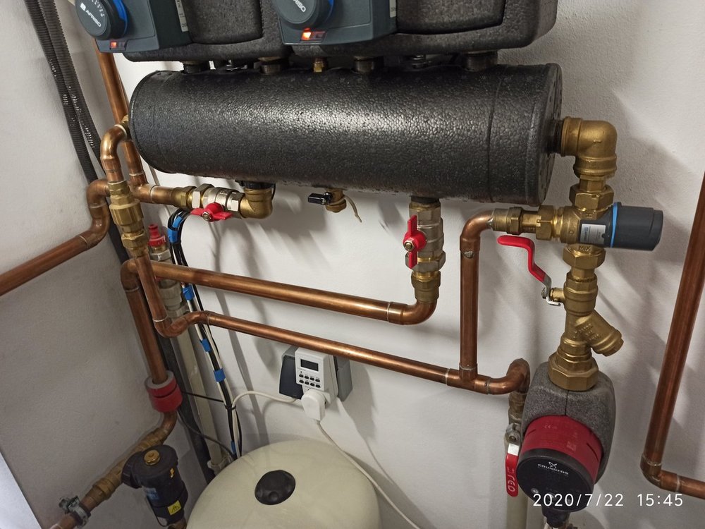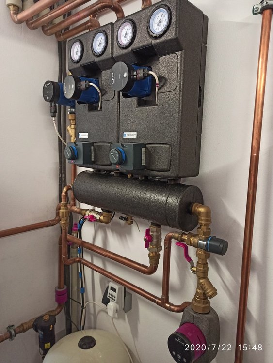 Generalnie to w tym zaworze są 3 możliwości podłączęnia manometru, masz w zestawie jeszcze mini zaworek spustowy, który można montować tak jak manometr w dowolnym miejscu. @PIK chyba nie przesłali mi z zaworem karty katalogowej i zamontowałem jak było wygodnie i z użyciem takiego manometru jaki akurat miałem pod ręką. Rzeczywiście pionowy sposób montażu może mieć sens, bo ewentualne zanieczyszczenia popłyną dalej, a nie zatrzymają się w łożu. Co do wykonania, dzięki! Rzeczywiście ogarnięcie kotłowni kosztowało mnie sporo pracy i jeszcze więcej główkowania, tym bardziej że praktycznie wszystko robiłem pierwszy raz włącznie z lutowaniem miedzi.
