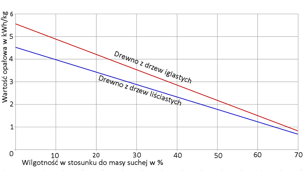 Muze być mało. Trzeba lupac na mniej niż 12cm i układać z dużymi przerwami. To nie ma sensu do kotła nie HG by tak cienko lupac, nawet jak z góry zapalisz. To cena za m3(Kubik) a od sprzedawcy masz przestrzenny mp lub przestrzenny układany mpu lub co gorsza nasypowy mn. Ciężko mi powiedzieć jakie są przeliczniki bo wszędzie różnie piszą. 1mp ogólnie to 0,65m3 (dla niektórych iglastych 0,7) mpu to juz między 0,7 a 0,85 wypisuja jednak układane licz lepiej jak 0,6 i wtedy masz cenę. U Leśniak płacisz za 1,53mp,albo i lepiej jak ci poukłaja byłe jak. Kup oby opal a to odłóż. Oni nigdy nie dadzą suchego. Przy suszeniu drewno ma skurcz wolumeniczny. Treści objętość, na Szczerców cześć idzie w spekania jednak na suchym tracą dobre 8-10% w zajęciach od gatunku. Dach lepiej 3 sezony letnie (kupiony zima). Garbniki powodują że jest niezwykle korozyjny. Dlatego potrafi być tani. U mnie znalazłem oferty że po tyle samo co brzoza bo ludzie już coraz bardziej ogarnięci co do sezonowania przez handlarzy (nie suszenia sezonowania) i co do tego jako dąb jest. Jak źle suszyć to i 5 sezonow może być mało. Sezon dla brzozy czy sosny to tylko jak warunki odpowiednie. One to tabak 2 trzeba liczyć. Drewno strasznie treści kaloryczność w zależności od wilgotności. Wykres (wzięty od Juzefa) w języku poganskim ;] to schniecie dla brzozy, schniecie bo tego zajebistego drewna nie trzeba sezonowac. Zajebiste do kotła HG, choc w GSie też jakoś idzie jak z góry grube odpalić. PS. Tutaj ładnie widać dlaczego atutem drewno ma iść do drewutni albo do kotłowni. Ścianę przy minimalnej średniej wilgotności dane użytek nawet i 11% na kaloryce.