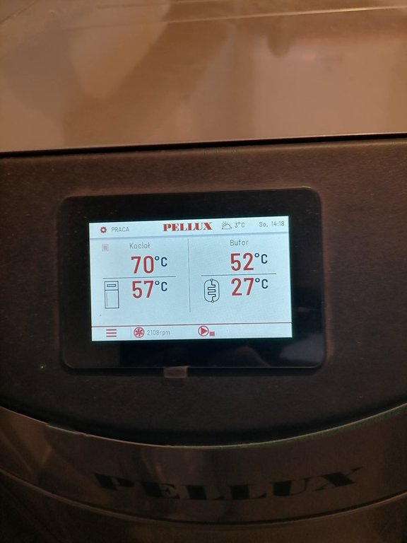 Witajcie. Kotłownia gotowa, w domku ciepło. Pellux compact 12kw na Plumie plus bufor 320L. Dom obecnie się wygrzewa ale jest już 18stC. Na podłogę temp zwiększam, zmniejszam. Na grzejniki idzie 35-40stC. Kociolek pali od 5dni. Pytanie mam. Czy zawsze to tak wygląda na początku, że potrzebuje kilku dni by sam siebie dogrzał? Bufor ust na 70stC, automatycznie kocioł zwiększył swoją temp do 75. Doglądam 3x dziennie i max temp bufora jaką widziałem to 60stC. Co wejdę do domu to Kocioł pracuje. Od początku do teraz spalił cały zbiornik 200L plus 15kg. Wrzucam fotki.- 903 odpowiedzi