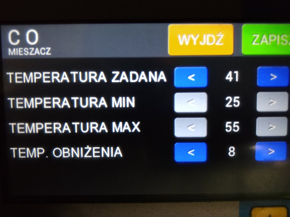 2. Nie wiem, czy pomogę, ale miałem tak ponastawiane i działało. Na programatorze niebieski to oczywiście temp. obniżenia, a zadana to jest NORM.