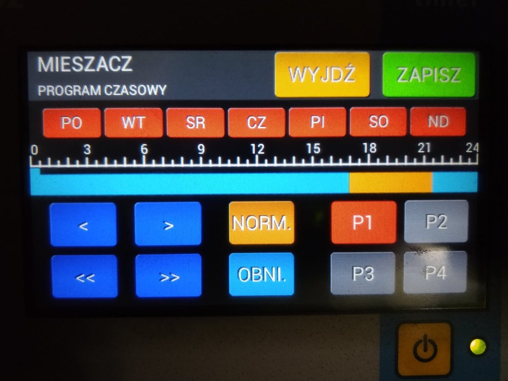 3. Dzień dobry. Problem mam z programatorem czasowym, konkretnie od temperatury mieszacza. Zadana 42 st., obniżenie o 8 st.( na 34). Obniżona w godz.; 22 do 16:30 , reszta zadana. Z zadanej wychodzi o dobrej godzinie, ale z obniżonej na żądaną zamiast o 16:30, to podnosi o godzinę wcześniej. W domu za ciepło. Chodzi o MIESZACZ. Po zmianie czasu mu się poprawi? Modulacja wysoka, bo dogrzewał instalację.