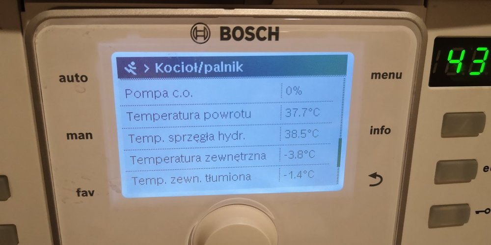 Temperaturę mam ustawioną na 20 stopni/obniżenie na 18. W pokojach jest 19-21. W domu od niedawna jest też uruchomiona rekuperacja.