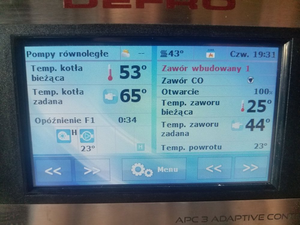 Przysłuchałem się i te dudnienie to prawdopodobnie dźwięk z jednej z dwóch pomp, które są umieszczone od razu za piecem, ta na której widać 40W. Druga, która się nie świeci idzie do bojlera. Dość mocno słychać jak przepływa woda. Drugi dźwięk to chyba podajnik pieca. "Do poprawnej pracy takiego zaworu, musi być podana trochę wyższa temperatura z kotła, tak aby miała minimum 10* więcej niż nastawa zaworu. " - piec mam ustawiony na PID, więc on sam ustawi sobie odpowiednią temperaturę? Raz na miesiąc wyświetli mi sie komunikat "niska temperatura powrotu" i w sumie nie wiem co to oznacza. -