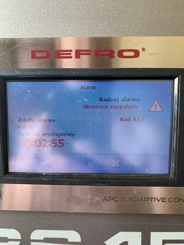 Witam, jakieś 3tyg temu po zmianie pelletu (din i a1) kocioł zaczął rzucać komunikatami w stylu zanik ognia w pracy, nieudane rozpalanie kod błędu A17. Gdzieś na forum przeczytałem żeby podnieść obroty wentylatora z 600 na 800 i o dziwo pomogło. Ale niestety tylko chwilowo bo dzisiaj znowu ta sama sytuacja z tym że podniesienie poziomu obrotów już nie pomaga. Czyszczenie, później podsyp 28sek, później grzałka 10min i temperatura spalin stoi na 31 stopniach. Uruchamia się drugi raz podsyp na 12 sekund i kolejny raz grzałka na 10min po czym pojawia się błąd A17 i kocioł się wyłącza. Co może być przyczyną? -