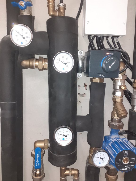 Witam. Potrzebuje porady czy ta instalacja jest wykonana poprawnie, chodzi mi o połączenia między kotłem a sprzęgłem i dalej za sprzęgłem. Link do zdjęć kotłowni Ogrzewanie 100% podlogowka Kociol junkers cerapur smart zwb 28-5 plus zew.czujnik temperatury. Mm100 zawor 3D Cw 100 w salonie 1 sprawa to: Z lewej strony sprzęgła 2 krućce, w które za jakiś czas wepnę obieg z bufora 1000l który będzie rozgrzewany do 60-65 stopni. Bufor będzie rozgrzewany poprzez piec w budynku gospodarczym zawsze na weekendy ponieważ mam tam warsztat i w sobotę zawsze się pali po 12godzin temp 65 stopni do bufora będzie wpływać. Bufor połączyć bezpośrednio do sprzęgła pompa obiegowa i zawor zwrotny ? Czy lepiej przez weżownicę 3/4 cala 25m rura karbowana nierdzewna w buforze i do sprzęgła? 2 sprawa to : mam zbiornik na wode uzytkową 180l z wezownicą rura karbowana nierdzewna 3/4 cala około 15metrow. Chciałbym zrobić tak że woda z pieca na opał stały przelatuje w pierwszej kolejności przez weżownicę w zbiorniku na wodę użytkową pozniej wpada od góry do bufora a dołem z bufora leci do pieca w gospodarczym. Pytanie jak wpiąć zbiornik z wodą uzytkowa do instalacji ? Puścić przez piec gorąca wodę czy zastosować zawor 3 drogowy kulowy, który zasteruje przepływ za pomocą czujnika w zbiorniku np 43 stopnie to przyłączy i ominie kociol gazowy gdy spadnie poniżej 38stopni przełączy na kociol.?