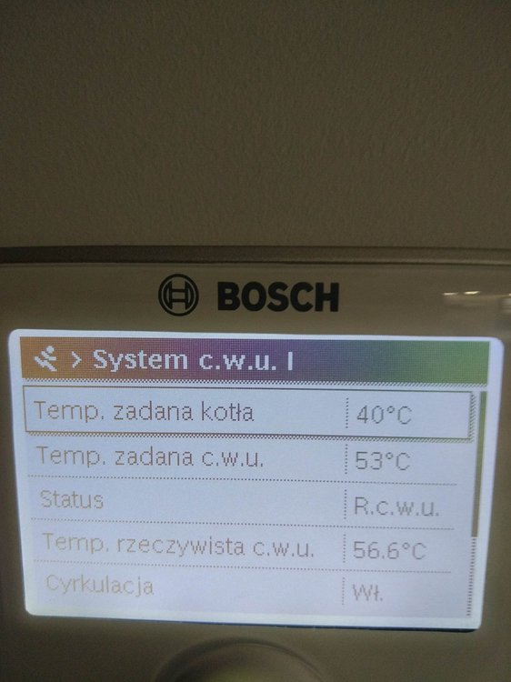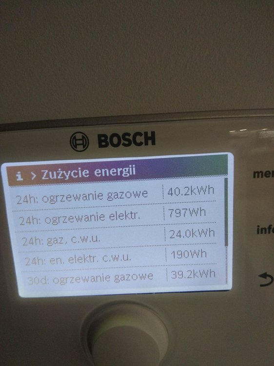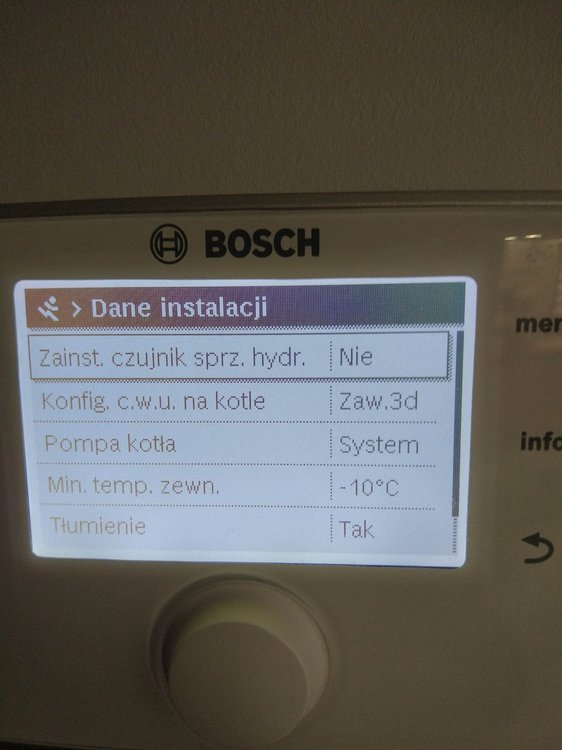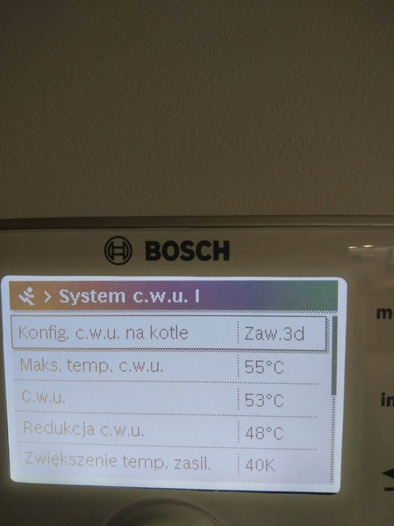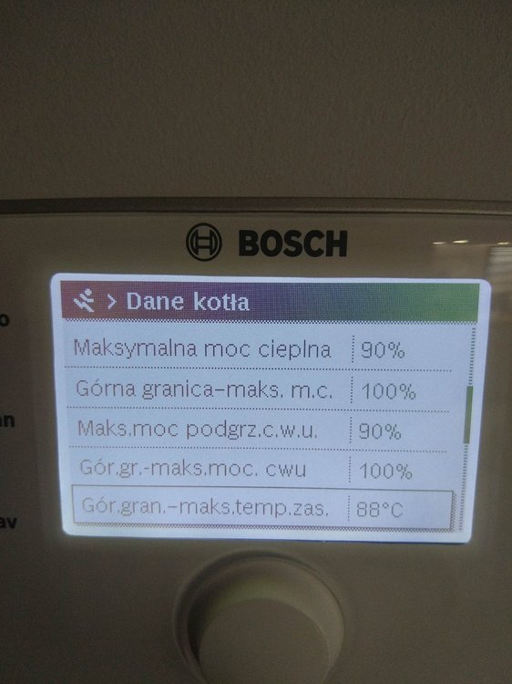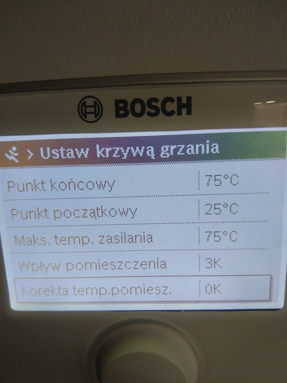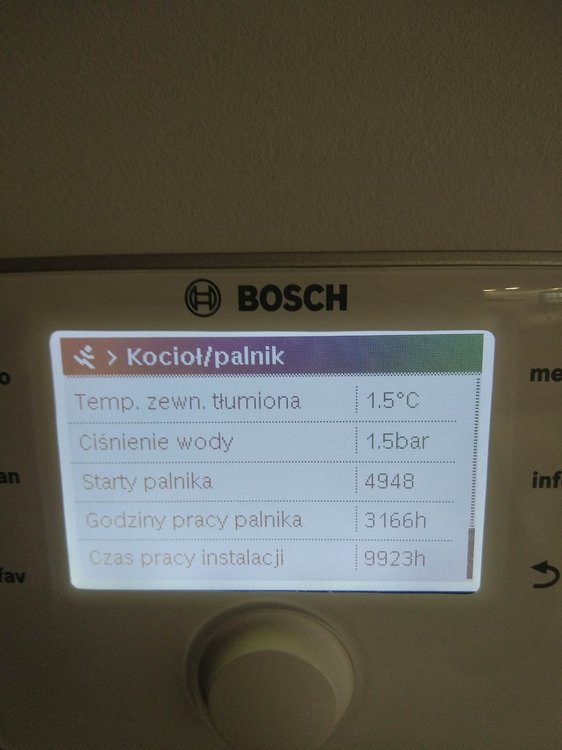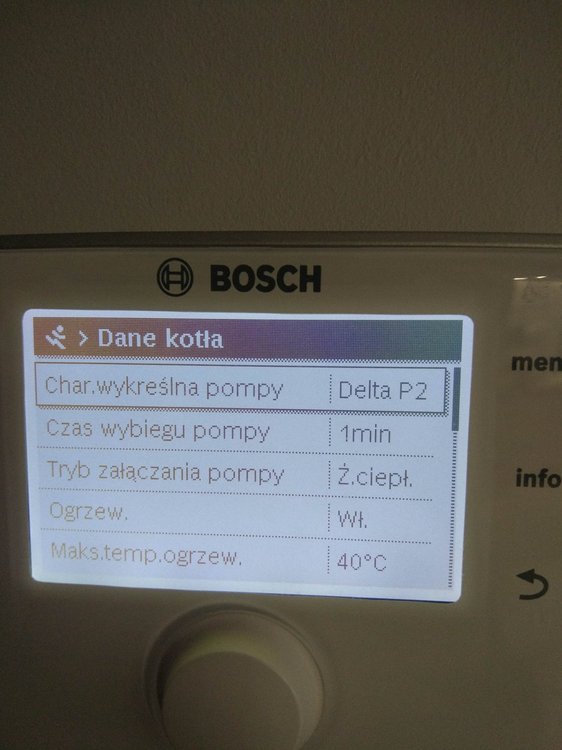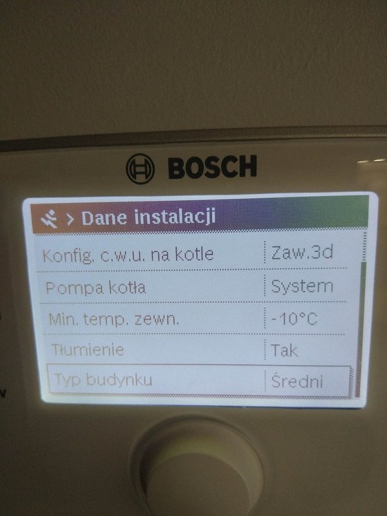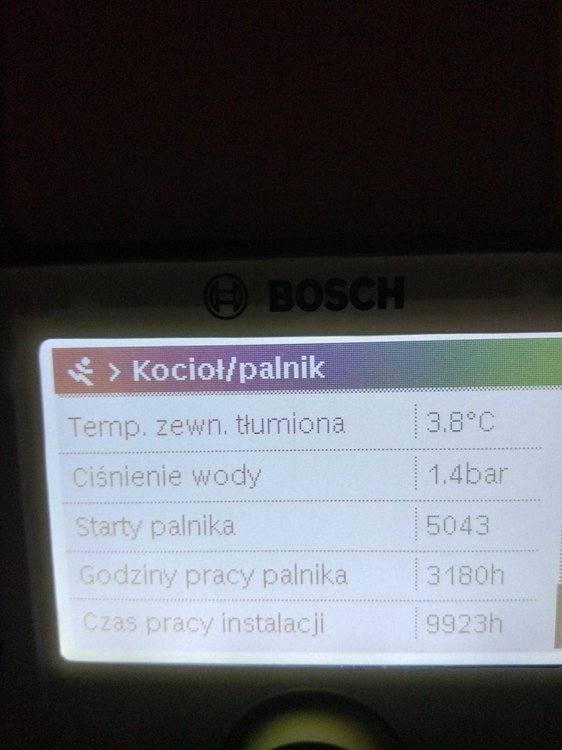 Witam. Na początku chciałem napisać, że od kilku dniu próbuje znaleźć jakieś pomocne ustawienia na forach, ale z marnym efektem. Zanim napiszę o piecu to mam jeszcze 2 pytania: 1.Czy to, że na rachunku za gaz mam przeliczenie jako, że 1 m3 gazu to 10.9 kW, a patrząc na dane z pieca wychodzi, że 1m3 gazu to średnio 8.3 kW- to jest normalne? Jakieś straty przy spalaniu czy złe ustawienie pieca? 2. Czy to możliwe, że taka firma jak bosch mogła źle skonfigurować temperaturę na CW400? Pytam bo obok Cw400 przyłożyłem 3 inne termometry i te 3 pokazały tą samą temperaturę, a na CW 400 pokazało o 1.1 stopień mniejszą wiec w kalibracji ustawień dodałem 1.1 K i pokazuję tą samą. Ale zastanawiam się czy 3 termometry pokazują źle czy możliwy jest błąd CW 400, aż o 1,1 stopień. A teraz do sedna. Posiadam piec Bosch Condens GC9000iW 20kW + CW400 i odnoszę wrażenie, że nie jest on poprawnie ustawiony. W momencie kiedy piec był sprawdzany i rzekomo wyregulowany przez serwisanta po podpięciu byłem za granicą wiec tato przekazał mi informację, że serwisant był, uruchomił piec, wyregulował i tak zostało. Problem w tym, że niedawno się wprowadziłem do domu, a od podpięcia minęło kilka miesięcy więc dopiero teraz tak naprawdę sprawdzam jak piec funkcjonuje po rzekomych ustawieniach przez serwisanta. Przy obecnych ustawieniach problem, który zauważyłem jest związany z taktowaniem pieca. Po kilku dniach obserwacji zauważyłem, że piec włącza się średnio 90 razy na dobę. I od kilku dni grzebię w internecie próbując wykonać jakieś zmiany w ustawieniach pieca czytając fora gdzie ludzie mają podobne problemy z taktowaniem, lecz przynosi to małe skutki lub wręcz odwrotnie tzn. przy ustawieniach(serwisanta) przy średniej temp -2 w nocy 2 w dzień zjadło jakoś 6 m3 gazu, po wprowadzeniu zmian, które znalazłem w internecie z takim samym piecem przy temp 0 w nocy 3 w dzień, zjadło mi 8 m3 gazu, więc jeszcze więcej, a taktowanie dalej pozostało takie samo). Wróciłem wiec do ustawień (serwisanta). Proszę więc czy mógłby ktoś zerknąć co mogę zmienić w ustawieniach, zanim zadzwonię do serwisanta wydam kasę i dalej nie będę pewny czy dobrze to zrobi. Trochę informacji na temat budynku: Nie wiem który metraż muszę podać do ogrzania, bo też szukałem o tym informacji i każdy podaję inną, tak więc podaję metraż powierzchni użytkowej. Powierzchnia domu użytkowa 135 m2, lecz kaloryfer mam również w garażu czyli dodatkowe jakby miejsce do ogrzania +20 m2 = 155 m2 Dom jest z poddaszem, na dole jest podłogówka + grzejnik w garażu oraz drabinka w łazience. Na górze 5 pokoi wszędzie kaloryfery + łazienka z podłogówką i drabinką. Na górze, tak naprawdę używane są tylko 2 pokoje więc w pozostałych grzejniki są zakręcone bo i tak jest w nich ciepło. Temperatura ustawiona jest na 22-23 stopnie. Podłogówka podzielona jest na 3 strefy, które mogę sterować regulatorem. Dom z pustaka max ocieplony styropianem grafitowym 0.031 okna tez dobrze izolowane i poddasze wełna 30 cm 0.035. Jeżeli potrzebne więcej informacji proszę pisać. Może ktoś mi pomoże rozwiązać problem z taktowaniem pieca i z ograniczeniem spalania. Przesyłam zdjęcia z obecnych ustawień pieca.