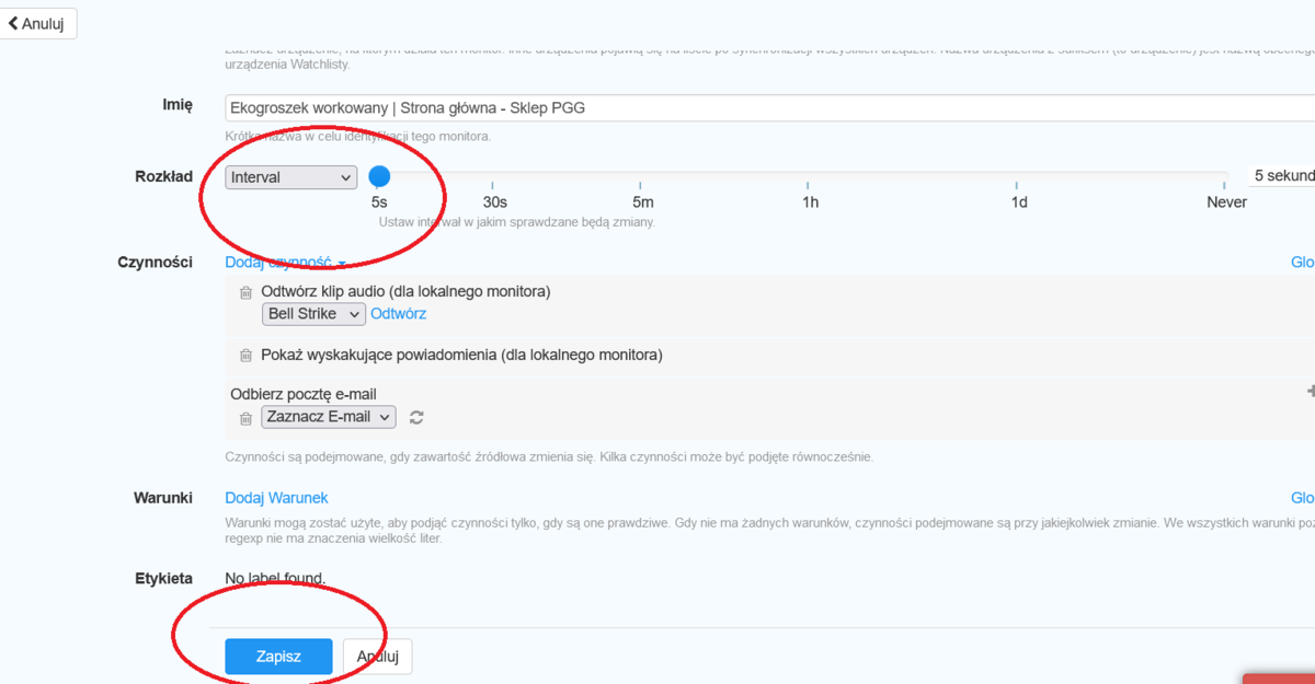 Dokładnie "Monitoruj całą stronę. Można sobie do testu dać np. wp.pl tam są zmiany dosłownie co 5 sekund