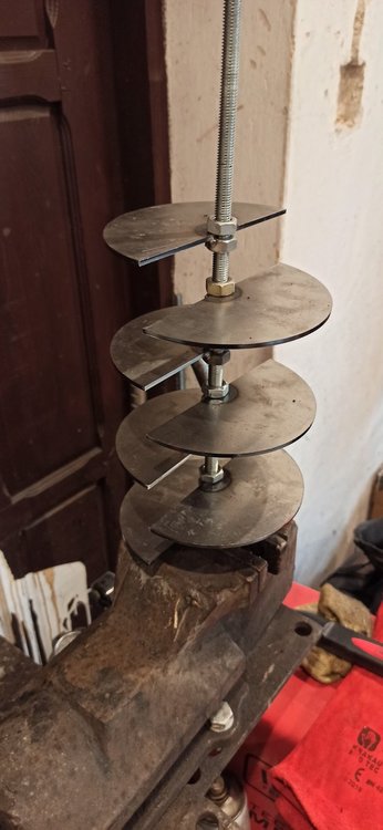 ten zawirowywacz wygląda rozsądnie poprosiłem o wykonanie takich blach zamiast poprzedniego pomysłu, gwintowany pręt już czeka. W moim wynalazku popełniłem oczywisty błąd bo wszystkie blaszki w dwóch rzędach zrobiłem w jednej linii, bez sensu bo przecież sama nazwa wskazuje na zawirowanie, a u mnie go nie było zupełnie... mniejsza o to -