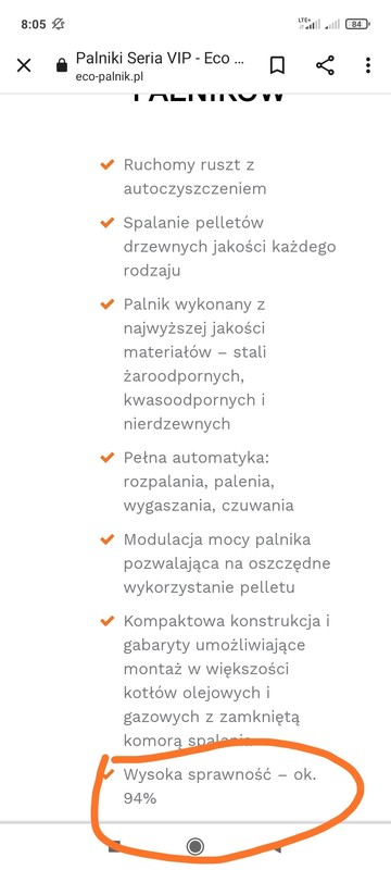 23. Co do sprawności palnika wklejam screen. Czyli jak ustawić w sterowniku moc? Przeliczając te 8kw na m2? W takim ustawieniu kocioł teoretycznie będzie pracował najefektywniej?