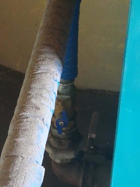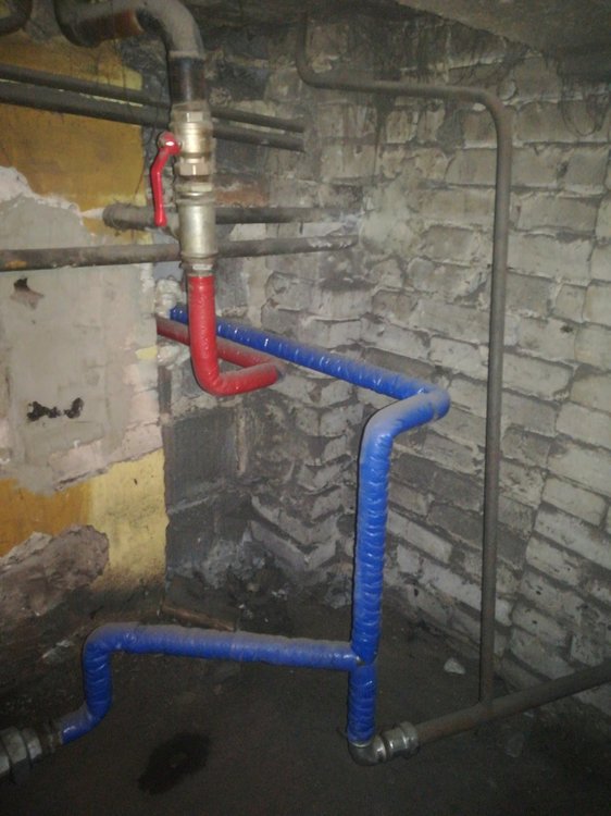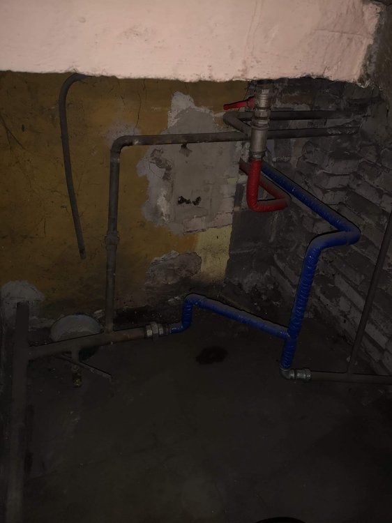 Tam gdzie niebieska i czerwona rura wchodzi w środek ściany jest piec teraz. A wcześniej był pośrodku tych rur stary piec. Ps. Zawór teraz przykręciłam dalej się nie dało -