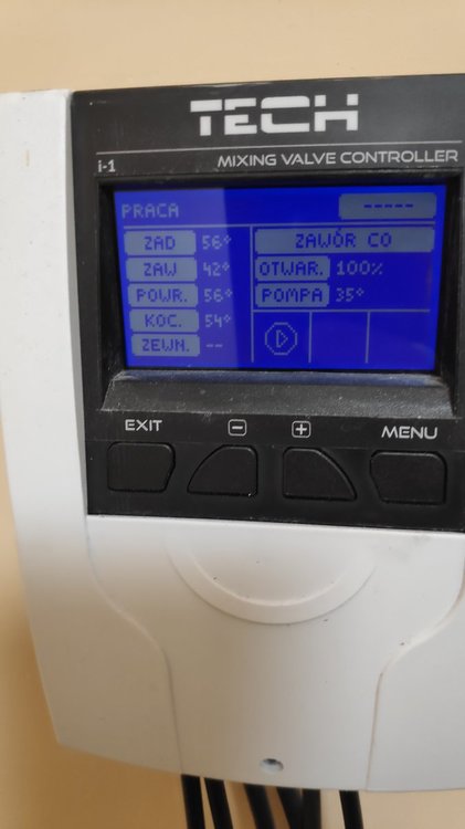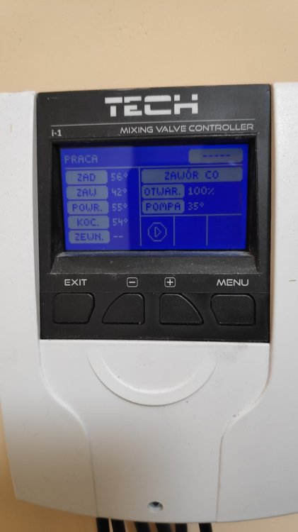 Dzień dobry. Posiadam sterownik Tech i-1 i używam go od niedawna, do tej pory w trybie letnim. Wczoraj przy chłodniejszym wieczorze zacząłem używać sterownika w trybie 'ochrona powrotu'. Ustawiłem temperaturę powrotu jaką sterownik ma utrzymać na ok. 45-50 stopni. Przez jakiś czas jak zaglądałem do kotłowni powrót był ok, i zadana na grzejniki w granicach 55 stopni. Za jakiś czas poczułem chłód w domu, zaszedłem do kotłowni i patrzę, a tam coś takiego jak na filmie który nagrałem : https://youtu.be/E9dkm-ashjQ Zawór otwarty na 100%, brak nagłówku ochrona powrotu, temperatura na kotle odpowiednio wysoka, pompa CO za zaworem słychać że chodzi, grzejniki chłodne/zimne. Nowa instalacja, termostaty na grzejnikach ustawione na '3', bez podłogówki. Bardzo proszę o pomoc, wczoraj w nocy poległem na tym. Pozdrawiam serdecznie. -