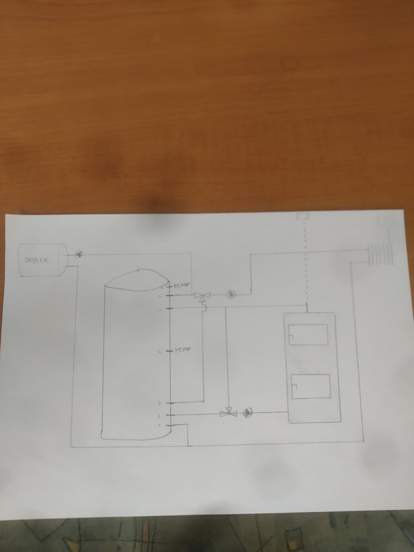 Czyli rurę idącą od dołu zaworu trzeba wpiąć do powrotu z instalacji a w jej miejsce pod nr 3 w buforze wsadzić termometr, reszta bez zmian ? A można tam ewentualnie powrót z cwu ?