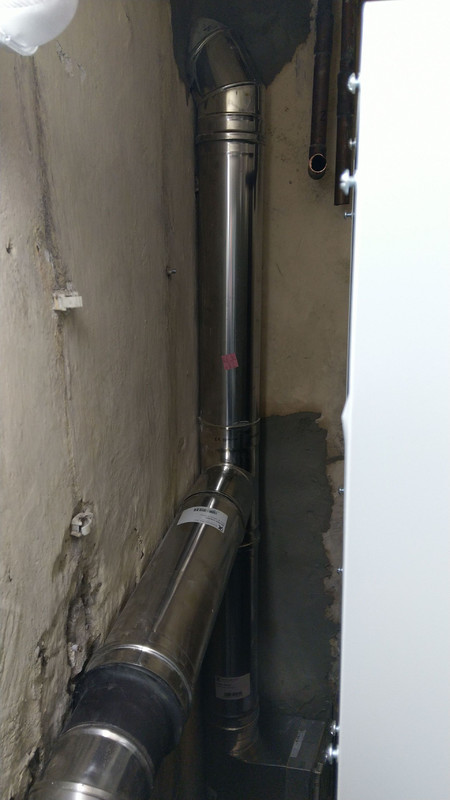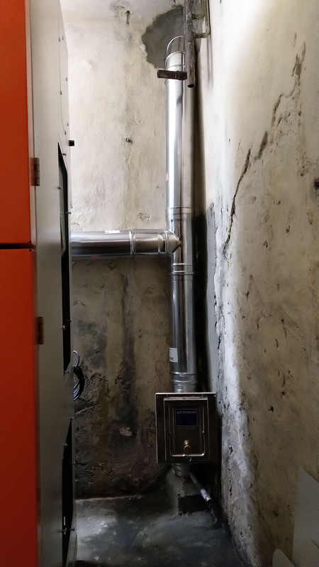5. Witam wszystkich. Jestem na etapie zmiany pieca węglowego na kocioł na pellet wraz z wkładem - Lazar 11kw Był problem z włożeniem wkładu kominowego ponieważ komin ma przewężenie i idzie pod skosem, na zdjęciach poniżej przesyłam jak to połączyli. Bardzo proszę Was o poradę bo nie wiem czy to połączenie jest prawidłowo, rura pozioma ma 73cm. Czy takie połączenie może powodować problemy z paleniem? Bo wtedy może jeszcze inaczej ustawią kocioł. Komin ma 8metrów wysokości.