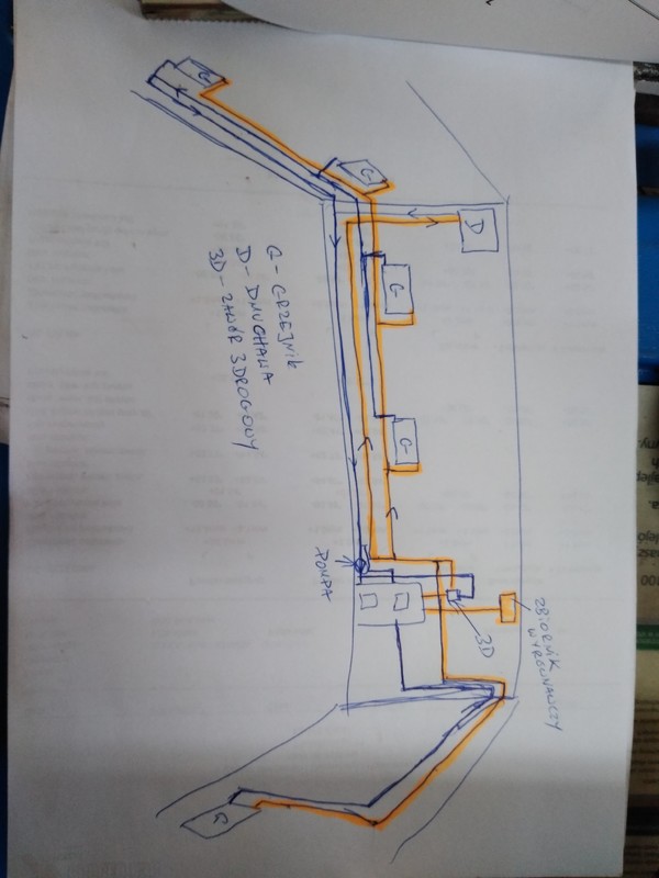2. Witam. Jestem w trakcie budowy budynku gospodarczego o pow.około 100m2. Potrzebuje zrobić proste ogrzewanie centralne. Wykonałem szkic jak miało by to wyglądać. Moja prośba to sprawdzenie, czy instalacja ma sens i będzie działała poprawnie, wszelkie uwagi mile widziane. Pozdrawiam.
