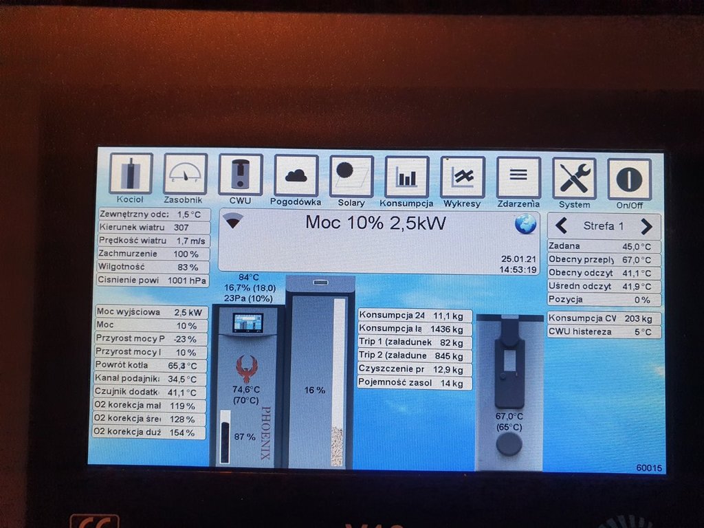 1.Nie jestem pewien w 100% że to jest akurat 0,9 kW 2.Pewien jestem że przy tym ustawieniu kocioł zużył 0,5 kg pelletu w ciągu godziny ( na wykresie np. od godz.0.00 do 1.00 ) 3.Jest to w moim przypadku moc minimalna - dalsze zmniejszenie powoduje zanik płomienia - za mało podaje 4.Obawiam się że nikt na tym forum nie zna algorytmu spalania w tym kotle - tajemnica producenta i tak samo jak nie doczekałem się odpowiedzi w jaki sposób możliwa jest zdalna regulacja V16 przez serwis - jest to możliwe ? ja aby wyregulować muszę podejść do kotła 5.Jeśli dobrze rozumiem w moim przypadku : (screen) - 440g podawania na małej mocy x 250% O2 korekcja mała moc daje 1100g podawania 6min. - czyli w ciągu 6minut podaje przy mocy minimalnej 440 g pelletu rozłożone na 6 minut ? (440x250%=1100 g)