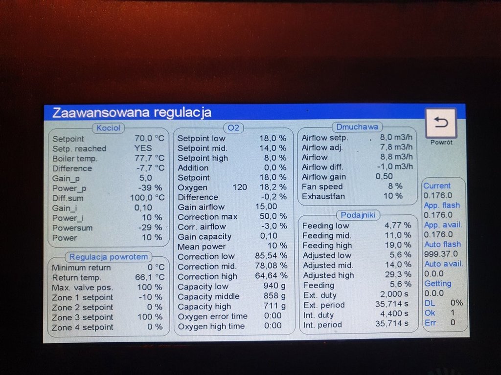 Nie znasz tego kotła - sonda lambda dba o płomień w tym kotle - brak płomienia - zatrzymanie kotła - poziom tlenu powyżej 20 przy 0,8 kW poziom docelowy O2 to 18% masz to na zał. powyżej screenie. W RTB waży się pellet przez 6 minut i to pisałem