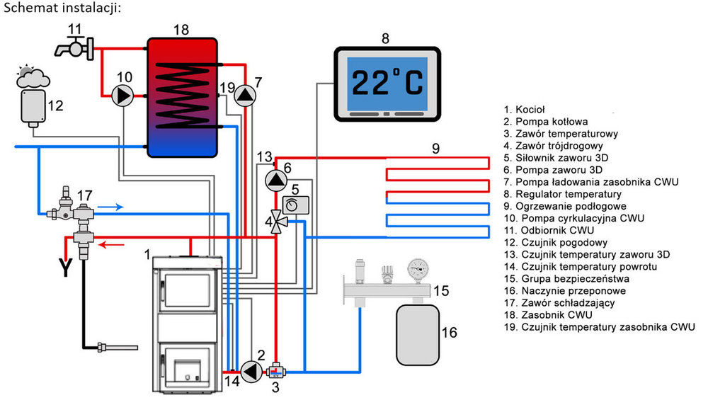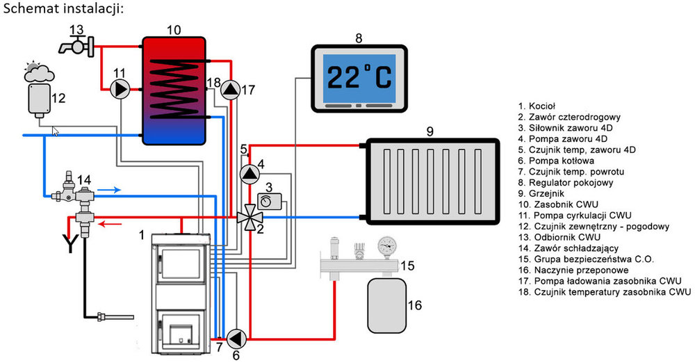 Hej drodzy forumowicze. W międzyczasie otrzymałem pierwsze propozycje projektowe potencjalnej instalacji mojej przyszłej kotłowni - z kotłem pelletowym. Dom ok 140 m2 do ogrzania. Instalacja grzewcza starego typu –kaloryfery, rury stalowe oraz zbiornik CWU. Chciałbym was zapytać które z proponowanych rozwiązań byloby lepsze w mojej sytuacji. Z tego co widzę jedno rozwiązanie jest z zaworem 4D a drugie 3D (w tym wariancie błędnie zamiast grzejników na rys jest podłogówka – muszę to zweryfikować) wariant 1- instalacja z zaworem 4D wariant 2 - instalacja z zaworem 3D (Zawór ATV 55) Z góry dziękuję za wskazówki, komentarze itp -