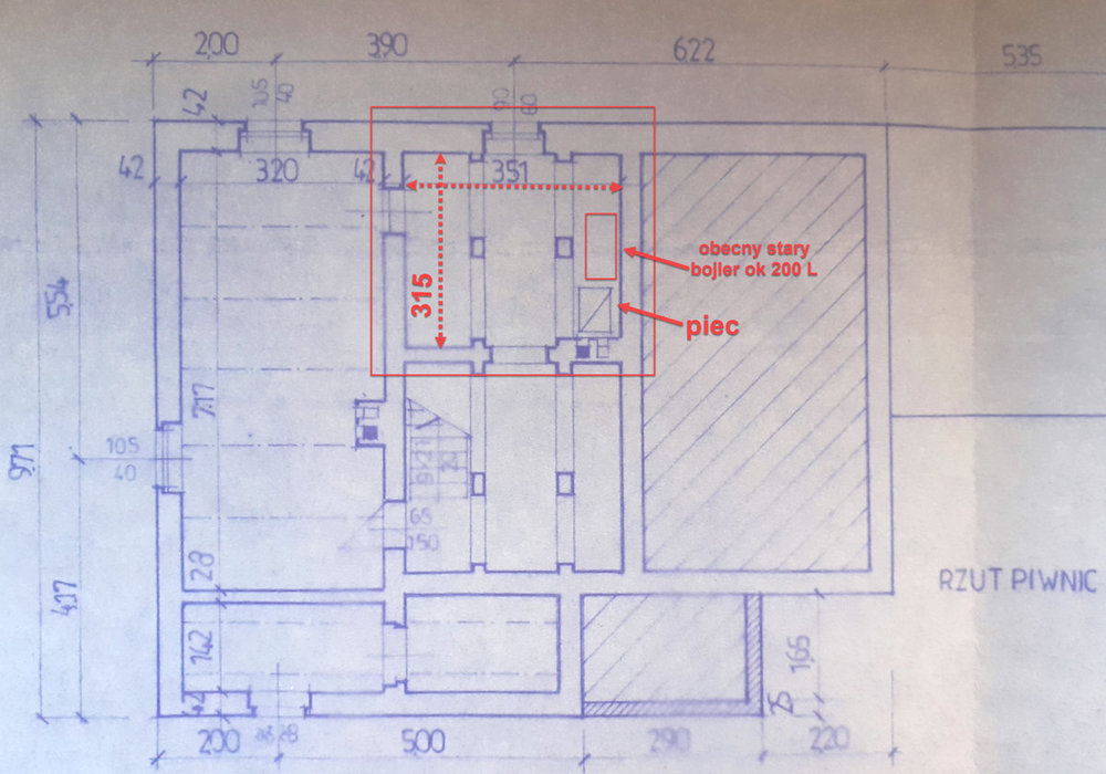 Witam serdecznie Chciałbym prosić forumowiczów o pomoc w doborze kotła na pellet, jaka instalacja bylaby najlepsza/najkorzystniejsza, określenia niezbędnych elementów dodatkowych gwarantujących dobrą pracę kotła (np sondy etc). Nie chodzi mi o gadżetyJ Jestem z Dolnego Sląska, powiat oleśnicki. Biorę udział w programie gminnym wymiany starych zródeł ciepła, gdzie mozna pozyskać znaczne dofinansowanie na wymianę starego pieca. Główne założenia projektu -> piec musi spełniać normy ekoprojektu obowiązujących od 2020r lub wymagań klasy 5 (norma PN-EN 3030-5:2012) ->Czyli ecodesign i kl 5. Wazne aby piec był wyposażony w automatyczny podajnik paliwa i nie będą posiadały rusztu awaryjnego ani elementów umożliwiających jego zamontowanie.Warunkiem obligatoryjnym jest koniecznośćwyposażenia w system zarządzania energią (termostaty,czujniki temperatury, pogodowe,obecności i in. urządzenia oraz oprogramowania) Dom wybudowany w latach 50-tych zeszłego wieku. Materiał –cegła, dach skośny kryty dachówką. Piwnica,parter, piętro oraz poddasze nieuzytkowe. Łączna powierzchnia domu ok 140 m2 ( poddasze nieuzytkowe nie uwzglednione) Sciane zewnętrzne nie ocieplone, stropy ocieplone (wełna 15 cm ytong 0,35). Kotłownia ma ok 11 m2 (3,5 x 3,15). w kotłowni wysokosc do stropu ok 1,75 m. Instalacja grzewcza kaloryfery (ok 9 sztuk, wiekszosc zeliwne,załozone termostaty).Piec „stary” weglowy, zuzycie ok 3,5 tony węgla + troche drewna w sezonie grzeczym. Służy do grzania i woda ciepła uzytkowa (stary bojler ok 200 L). Instalacja grawitacyjna, zbiornik wyrównawczy na podaszu Komin cegła, dł całkowita ok 10 m, srednica ok 16 -17 cm (bede weryfikował z kominiarzem) Rozglądałem się nieco za kotłami ( czytałem nieco na forum) i wpadły mi w oko Biawar Pellux comfort touch 12kW (teoretycznie ogrzeje do 240m2), Pellux 100 touch 20kW (to propozycja od przedstawiciela handl.), i ewnentualnie Blackstar+ (duzo dobrych opinii na forum ;-) ) Pytanie jaka moc byłaby najlepsza w mojej sytuacji, który z kotłów, ewentualnie – jak wyglada to kosztowo (szacunkowo). określenia niezbędnych elementów dodatkowych gwarantujących dobrą pracę kotła (np sondy etc). Oczywiscie nie chciałbym spędzać cąłych dni w kotłowni. W ramach projektu – planowana rowniez fotowoltaika (dofinansowanie). Bylbym wdzieczny równiez za wskazówki – jaki pellet rekomendujecie, ewentualnie od jakich dostawców. W załączeniu kilka zdjęc – plan piwnicy z zaznaczona kotłownia, i zdjecia obecne kotłowni. Będe wdziećzny za pomoc, wskazówki, jeśli brakuje jakichś infomracji – postaram się dodać. Kazda rada jak urządzić dobrze kotłownie mile widziana I z góry dziękuję za wyrozumiałość – jestem względnie zielony w temacie. -