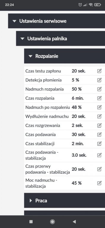 Zrób sobie czas podawania przy rozpalaniu 20s.- masz obecnie 30. Sprawdź czy rozpali za 1 razem. Czas rozgrzewania 2s. Szkoda zapalarki na 6s. Czas podawania stabilizacja 2s. Masz obecnie 3. Palić. U mnie wygląda tak. Ale wydajność podajnika to 8kg. -