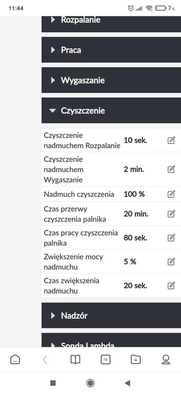 Kolejno... Wygaś kocioł. Tryb ręczny. Spiro do worka. Podajnik puść na 6 minut to co wypadnie mnozysz x10. Podasz mi tą wartość a ja Tobie powiem idealny czas podawania i przerwy. Czym Palisz? Kup cos konkretnego np Lave lub Olimp nie pal zadnym gównem. Masz doprowadzone powietrze do kotłowni? Ze zdjec wynika, że zbyt duzo podajesz paliwa lub jest kiepskiej jakosci. Długość cyklu zostaw na 20s. To taka klasyka. Temp na kotle ma miec min 70 stopni. Im wiecej tym lepiej. w FL wygasi sie na 75 bo zawsze przebija o 5 od zadanej. W standard wygasi sie na zadanej na kotle. W FL ustaw min 40procent i max 100 procent mocy. Jak wygląda instalacja? Masz tam ochronę powrotu? Jeżeli nad kotłem masz tylko pompke na grzejniki to nier ustawisz tego kotła optymalnie. Musi tam być zawor 3d lub 4d i pompa kotlowa ktora dogrzeje powrot. Temp spalin siega do ok 150 stopni na max mocy. na 40 procentach mocy nawet 70 stopni dlatego trzeba miec wkład kominowy bo inaczej moze wyjsc kondensat. Nadzór nie jest trybem dla Kotła na pellet ale jak chcesz to uzywaj. Temp w nadzorze musi spadać. Musisz tak go ustawić metodą prob i blędów. Zalezy jak wygląda instalacja i czy masz termostat pokojowy? Sa rózne metody utrzymywania ciepla w domu przy kotlr na pellet. Działanie na samej histerezie kotła czyli temp na kotle 70 i 15 histerezy i ciagłe rozpalanie lub palenie od termostatu i kocioł rozpala sie tylko wtedy jak temp spada w domu. Mozesz tez ustawić tak jak ja bo dom słabo ocieplony ze kociol rozpala sie tylko raz na tydzien. Moj kociol ciagle podaje pellet i chodzi od 40 do 100 procent mocy i tak moduluje moca aby w domu ciagle było 23 stopnie. Termostat mierzy temp w srodku i czujnik pogodowy na zewnatrz daje dane i pali od krzywej grzewczej. Im zimniej na dworze tym wieksza temp na grzejniki a termostat dodatkowo zrzuca lub dokłada od wspolczynnika temp. Skomplikowane ale ja do kotła tylko sypie pellet i go sprzatam. Nie zmieniam nic przez cały sezon. Jest ustawiony raz i w domu ciagle 23 stopnie. Elektronika wszystko robi za mnie ale 1 sezon musisz dostosować ustawienia do swojego domu. Termostat moze wygaszac kocioł i zatrzymywać pompe. Moze tylko wygaszać kocioł. Moze obnizać temp na grzejniki gdy w domu temp zadana. Musisz sie edukować aby dostosować optymalnie do swojego domu. Zaden serwisant tego nie zrobi. Zrobi klasyke: wygaszenie kotła i stop pomp ale w starym budownictwie to nie przejdzie bo jak grzejniki zimne to w domu zimno i nie ma komfortu cieplenego. Aby Tobie pomóc potrzebuje informacje. -