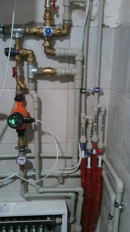 Witam jak w temacie, potrzebuję pomocy odnośnie sterowania CO w moim domu.Nadmienię że ogrzewam dom 150m2 z garażem kotłem firmy Galmet na pellet.W części parterowej jest ogrzewanie podłogowe ( 8 pętli) a na poddaszu ogrzewanie kaloryferowe ( 3 pokoje + otwarty korytarz). W kotłowni zasilanie na podłogówkę steruję za pomocą zaworu trzydrogowego, termostatycznego firmy Afriso. Zaś ogrzewanie kaloryferowe (góra) przechodzi przez zawór czterodrogowy ( chyba firmy herz ze sterowaniem ręcznym ). Kocioł galmet jest z paleniskiem Pellas Revo Mini do którego podłączony jest czujnik temp. zewnętrznej ( nie aktywny). Mam pytanie do Was, jakie mogą być możliwości sterowania ogrzewaniem z taką instalacją?