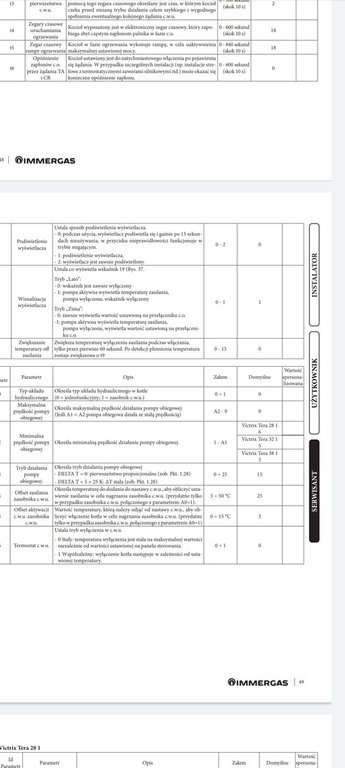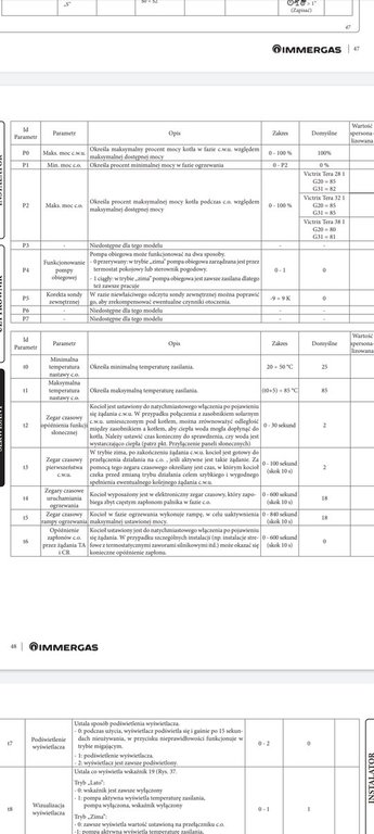 Witam Mam kocioł immergas victrix tera 24 dwufunkcyjny i zmienilem parametry t4,t3,t2,t9 i piec juz nie taktuje tak czesto i z CO jest ok. Tylko chciałbym osiagnać jeszcze lepszy komfort cieplny CWU. Po zmianie parametru t3 na maksymalna wartosc jest juz sporo lepiej i po ponownym odkreceniu kranu kocioł szybciej dogrzewa. Moge cos jeszcze zrobic aby usprawnic CWU czy pozostaje tylko montaz zasobnika?