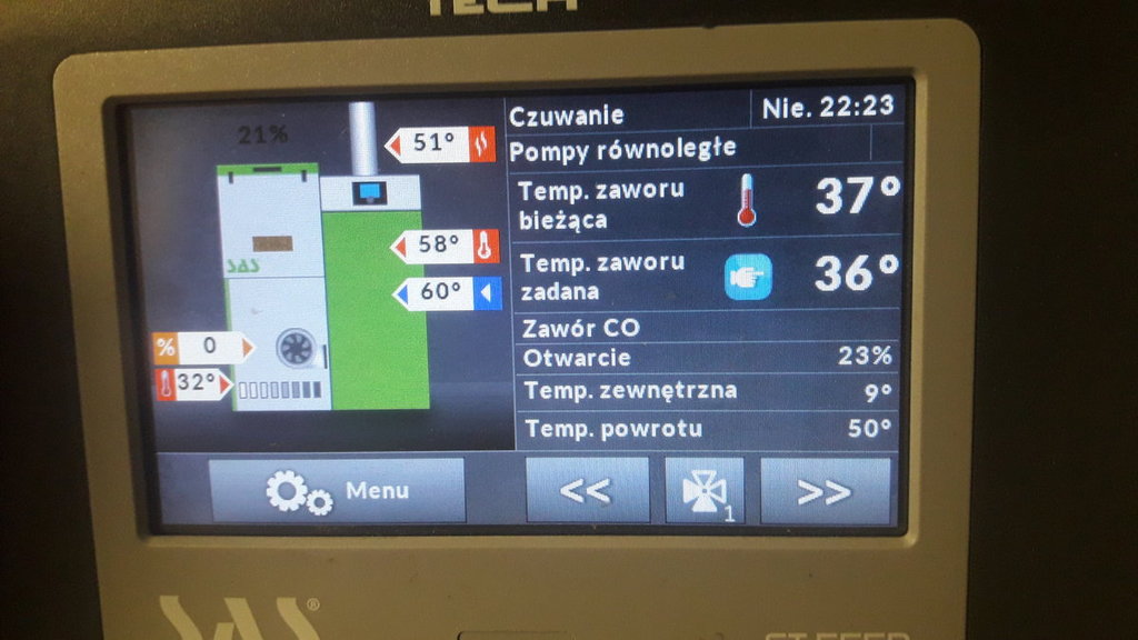 mam podobny problem , kocioł bio compakt 15kw, dom ok 160m2 do ogrzewania, średnio docieplony, instalacja grzejnikowa przewymiarowana + głowice, układ zamknięty zawór 4d z siłownikiem, pompa kotłowa, cały czas próbuje różne ustawienia z forum, serwisant z sasa zaproponował żebym ustawił kocioł na 55` (rzekomo nic się nie stanie) i bez wyłączania kotła. Jest też załączona pogodówka, przy+12 stopniach na dworze zawór się ustawił na zadaną 35` a aktualna jest około 50` przy 4d zamkniętym na 3%. Zauważyłem że przy -8 i +12 na dworze kocioł żre tak samo 40-45 kg. W historii alarmów jest też uszkodzony czujnik podajnika data od 2016r do bieżącej daty a kociołek jest od października. Ktoś? coś?